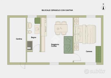 Dogana di Rimini - Cerasolo Proponiamo in vendita bilocale in bifamiliare, completamente ristrutturato nel 2025, con ingresso indipendente al piano terra. L'immobile si apre su un moderno e luminoso soggiorno, dal quale si accede alla camera matrimoniale e al bagno. Completa la proprietà una cantina di circa 7 mq, accessibile tramite porta esterna. Non sono presenti posti auto privati, ma la zona offre diverse possibilità di parcheggio nelle immediate vicinanze. La posizione è strategica: l'area è servita da tutti i principali servizi ed è situata a pochi metri da San Marino.