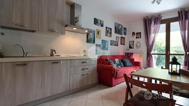 L'appartamento, ci accoglie con ingresso su soggiorno e cucina open-space con accesso diretto al meraviglioso giardino privato.