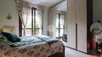 Proseguendo, nella zona notte troviamo una comoda camera matrimoniale anch'essa con accesso diretto al giardino ed infine un pratico bagno cieco con box doccia.