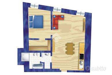 L'immobile è situato al secondo piano di una palazzina di 6 unità abitative ed è composto come segue: ingresso, soggiorno con angolo cottura molto luminoso, antibagno e bagno con vasca e doccia, infine una camera da letto matrimoniale con cabina armadio.