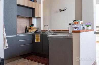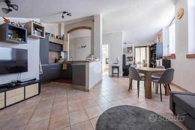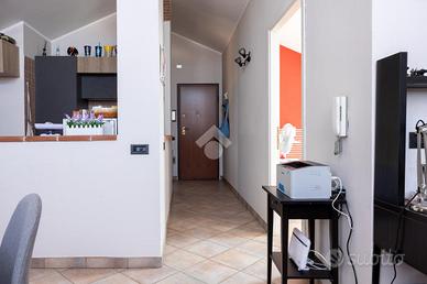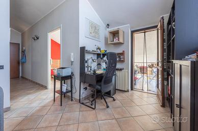 L'alloggio si trova all'ultimo piano di un contesto, dotato di ascensore, nel centro di Riva presso Chieri, comodo a piedi alla banca, alla farmacia e al minimarket. L'entrata è sul disimpegno che divide gli ambienti. La zona giorno è un unico ambiente con la cucina a vista ed è caratterizzata dall'uscita sul balcone. Completa l'abitazione la camera da letto e il bagno finestrato dotato di vasca e doccia. I serramenti sono in legno con doppio vetro. Il riscaldamento è centralizzato tramite termosifoni con metano. Al piano interrato una cantina e anche un box auto acquistabile al prezzo di €10.000,00.