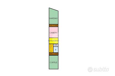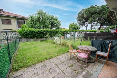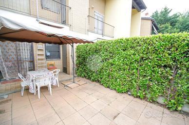 Rivarolo- In complesso residenziale edificato nel 2005, appartamento al piano terreno caratterizzato da giardino privato. La zona giorno, composta di tinello e di una pratica cucinotta dotata di parete attrezzata lineare, gode di sfogo su giardino pavimentato. La camera da letto di buona metratura si affaccia sul giardino retrostante. Il bagno munito di doccia vanta propria aria e luce. L'immobile presenta una pavimentazione uniforme in tutti gli ambienti, infissi esterni il legno con doppi vetri e, riscaldamento autonomo. La soluzione si completa di cantina e vi è la possibilità di acquistare a parte un box auto singolo posto al piano interrato.