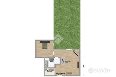 Rivisondoli: Residence Il Colle: appartamento al piano terra con caminetto. L'immobile si affaccia su una corte scoperta di circa 40 mq. di proprietà esclusiva. Condizioni originarie (fine anni '70).