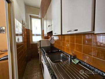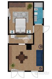 L'appartamento risulta essere così composto: ingresso in piccolo disimpegno che connette tutte le stanze della casa; appena si entra sulla destra troviamo il bagno finestrato con vasca e di fronte la camera matrimoniale di ampie dimensioni. Tornando nel disimpegno sulla sinistra troviamo il soggiorno, la stanza più ampia dell'abitazione, con secondo ingresso che da direttamente sulla strada e cucinotto abitabile.