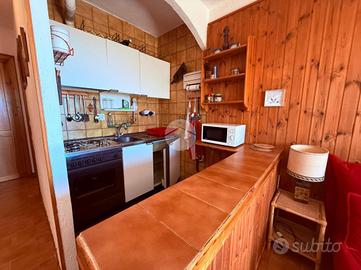 La soluzione è così disposta: entrando una zona giorno open-space con angolo cottura e camino, proseguendo una camera da letto matrimoniale e un bagno con doccia.