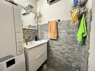 La solzuione è così disposta: entrando troviamo una zona giorno con stufa a pellet e affacio su ampio giardino, proseguendo una cucina, una camera matrimoniale con cabina armadio a vista e infine un bagno con doccia.