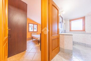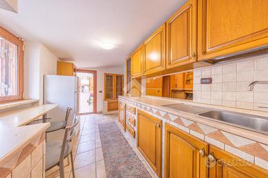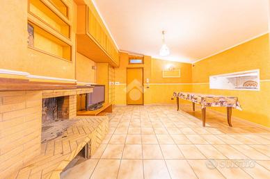 L'ingresso conduce a un ampio salone con un suggestivo camino in muratura, creando un punto focale accogliente e ideale per le serate invernali. La cucina abitabile, anch'essa realizzata su misura in muratura, aggiunge un tocco di eleganza e funzionalità allo spazio. La presenza di una portafinestra nel salone offre un accesso diretto al terrazzo, perfetto per godere di pasti all'aperto e momenti di relax.