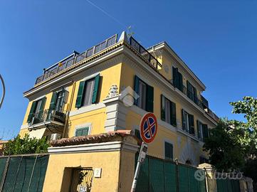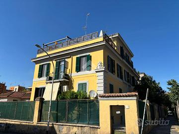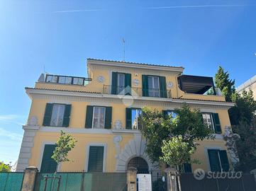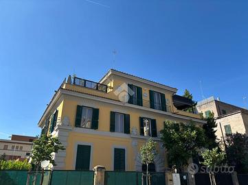 L'appartamento, al piano seminterrato di un villino liberty è così composto: doppio ingresso, due camere, cucina, due bagni e corte esterna.