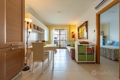 L'appartamento si apre su un accogliente soggiorno con angolo cottura. La zona notte è composta da una ampia camera matrimoniale e un bagno con box doccia. Da ogni stanza si accede ad un confortevole terrazzino abitabile, perfetto per godersi momenti all'aria aperta.