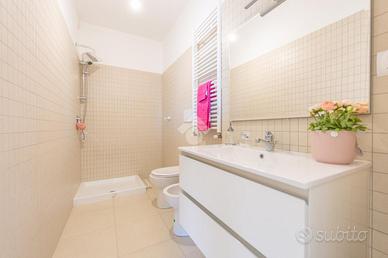 Il bagno finestrato con doccia, elegante e funzionale, garantisce momenti di relax e benessere.