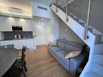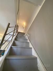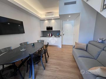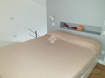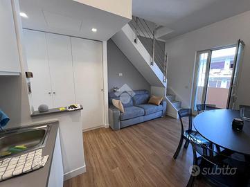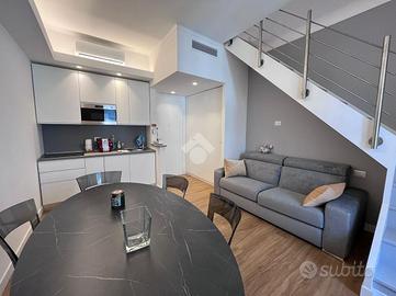 L'immobile, finemente ristrutturato con materiali di alta qualità, si sviluppa su due livelli ed è caratterizzato da ambienti moderni e molto luminosi. L'ingresso si apre sulla zona giorno, che comprende un soggiorno con cucina a vista ed una porta finestra che dà su uno spazio esterno con vista su San Pietro. Un'elegante scala porta al piano superiore, dove troviamo una camera matrimoniale con cabina armadio, ripostiglio, due bagni ed un piccolo terrazzino.