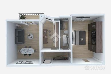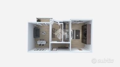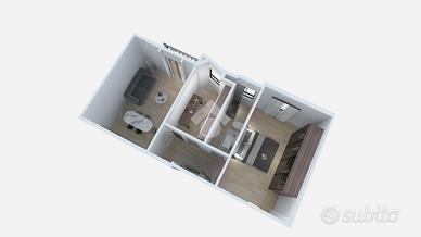 Entrando nell'immobile un ingresso ci collega ai vari ambienti della casa primo tra i quali, sulla sinistra, il soggiorno con accesso al balcone. Successivamente troviamo la cucina, il bagno finestrato con doccia e per ultima un'ampia camera matrimoniale.