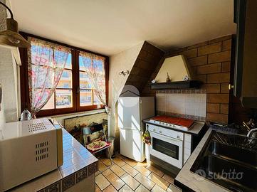 La cucina è adiacente alla zona soggiorno, finestrata ed arieggiata separandola dal disimpegno.