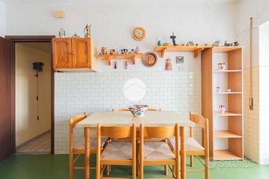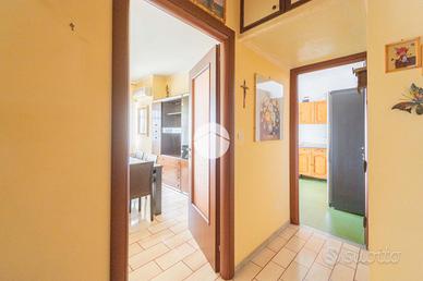 L'immobile internamente è composto da un ampio ingresso dotato di soppalco ed armadio a muro, regolare ed accogliente soggiorno, comoda cucina abitabile con finestra e portafinestra sul primo spazio esterno, grande e confortevole camera da letto matrimoniale con uscita sul secondo spazio esterno, bagno completo e finestrato ed, infine, un utile studio, facilmente convertibile come secondo bagno.