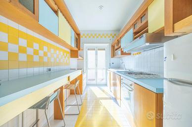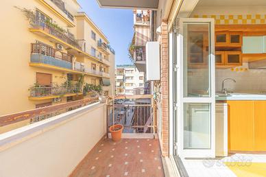 L'appartamento è ben distribuito ed è composto da ingresso, ampio soggiorno, camera matrimoniale, cucina abitabile, bagno finestrato, tre armadi a muro e balcone.