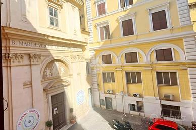 Proponiamo in affitto un elegante appartamento di 110 mq, situato al secondo piano con ascensore in un bel palazzo con servizio di portineria, in Via di Sant'Eufemia, a pochi passi dai Fori Imperiali e da Piazza Venezia. L'immobile, recentemente ristrutturato e in ottime condizioni, è composto da ingresso, ampia cucina abitabile, soggiorno con doppia esposizione (sia interna che esterna), una camera matrimoniale, un bagno e un terrazzo di circa 10 mq. L'appartamento si trova in una zona molto silenziosa e riservata, pur essendo nel cuore del centro storico di Roma. Il riscaldamento è centralizzato. La proprietà è disponibile con contratto transitorio con possibilità di rinnovo oppure con contratto 3+2. Si richiedono esclusivamente persone referenziate. Non è consentita alcuna attività ricettiva, quindi non sono ammessi affitti brevi o turistici. Richiesti tre mesi di deposito cauzionale. Le spese condominiali ammontano a 200 euro mensili (2.400 euro annui). Disponibile da subito. Per maggiori informazioni o per fissare un appuntamento: oppure