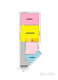 La distribuzione interna è così composta: ingresso, salone con angolo cottura, camera da letto, bagno e un ambiente versatile, ideale da personalizzare in base alle proprie esigenze e stili di vita.