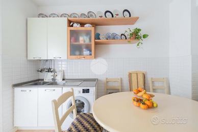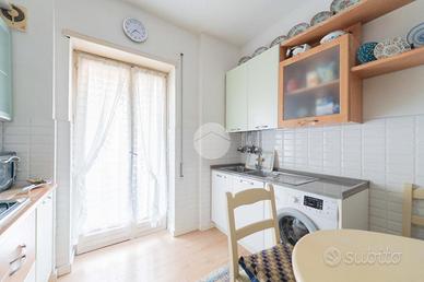 L'immobile è composto da accogliente ingresso con finestra, corridoio che separa la zona giorno con cucina a vista e con porta finestra sull'abitabile e luminoso balcone esposto ad Ovest, dalla zona notte dotata di grande camera matrimoniale con porta finestra esposta ad Est, bagno completo finestrato con vasca ed, inoltre, funzionale e comodo studio anch'esso finestrato.