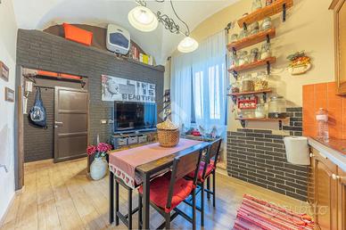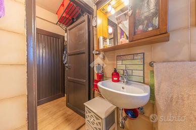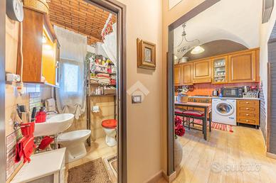 L'ingresso, indipendente, introduce in una luminosissima zona giorno con angolo cottura su misura, ben integrato nello spazio e pensato per ottimizzare ogni angolo. Adiacente si trova il bagno finestrato, completo di box doccia.