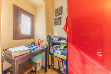 Proseguendo troviamo una stanza polivalente, oggi adibita a salone, ma perfettamente utilizzabile anche come camera da letto principale, grazie alla sua ampiezza e luminosità. Da questa stanza si accede a un locale adiacente attualmente organizzato come studio o cabina armadio, utile anche come spazio lavoro.