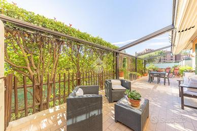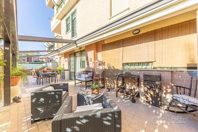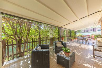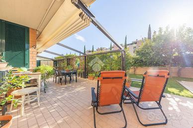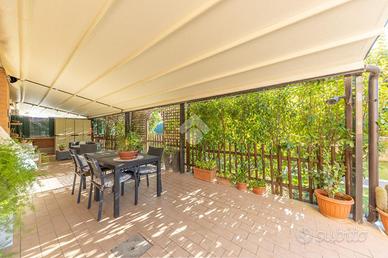 La proprietà vanta un ampio portico di circa 45 mq con pergotenda automatizzata, perfetto per trascorrere momenti di relax all'aperto. Il giardino è dotato di un impianto di irrigazione automatico con esposizione sud-ovest, che garantisce luminosità per gran parte della giornata.