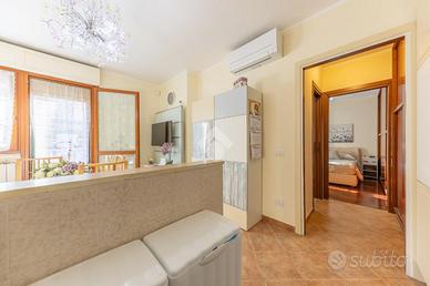 L'appartamento, curato nei dettagli e in ottimo stato è composto dal soggiorno e angolo cottura, con accesso al giardino, da una camera da letto anch'essa con accesso allo spazio esterno e da un bagno finestrato con box doccia.