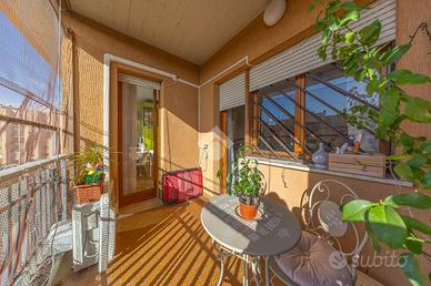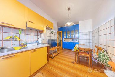 L'ingresso con disimpegno introduce alla cucina abitabile con balcone e al soggiorno, dotato di accesso diretto al terrazzino.