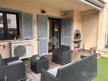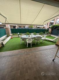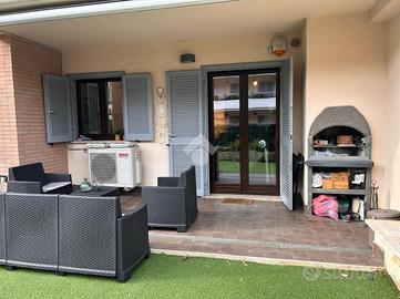 L'immobile è dotato inoltre di porta d'ingresso blindata, videocitofono, impianto d'allarme antintrusione e allarme volumetrico e perimetrale, infissi esterni in doppio vetro con apertura vasistas, persiane di sicurezza esterne in ferro zincato verniciate a fuoco, impianto di climatizzazione inverter classe A in tutti gli ambienti, impianto di irrigazione con timer, tenda parasole elettrica, nel giardino è presente un manto di erba sintetica montato professionalmente, la pavimentazione interna è in gres porcellanato effetto legno.
