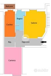Con una superficie di 80 mq, l'appartamento è composto da: ingresso, un soggiorno accogliente, una spaziosa camera da letto, una cucina abitabile con accesso al balcone,un comodo ripostiglio ed un bagno dotato di finestra, doccia e di una vasca idromassaggio, ideale per momenti di relax.