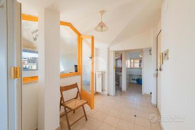 L'immobile, di circa 45 mq, è posto al 5° ed ultimo piano di una palazzina dotata di ascensore che arriva al 4°. Internamente è composto da ingresso, soggiorno, cucinotto, camera da letto e 2 sottotetti/ripostigli mansardati.