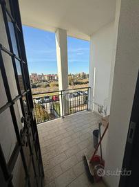 La zona notte comprende una camera matrimoniale spaziosa, anch'essa con affaccio su un secondo terrazzino, e un bagno finestrato dotato di box doccia, rifinito con materiali moderni.