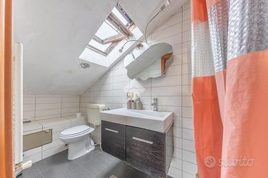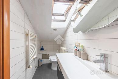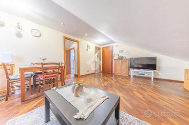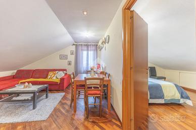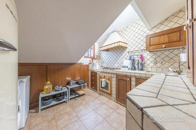 L'immobile si distingue per ambienti luminosi e ben distribuiti, caratterizzati dal fascino tipico delle mansarde, con spazi accoglienti e un'atmosfera calda e riservata. L'ingresso conduce alla zona giorno, dove troviamo un soggiorno funzionale e armonioso, ideale per momenti di relax o convivialità, con cucina ben organizzata e perfettamente integrata all'ambiente.