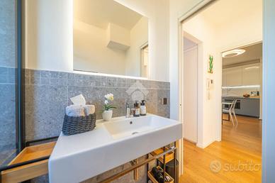 La camera da letto, intima ed elegante, è attrezzata con armadi su misura a tutta altezza. Il bagno di design ospita una doccia walk-in 80x160, dalle linee pulite e contemporanee.