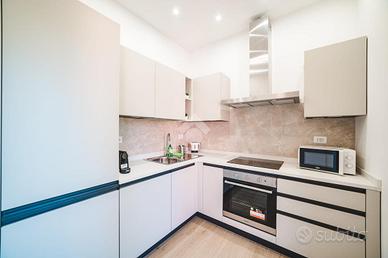 In contesto tranquillo e ben servito, proponiamo in locazione un elegante bilocale completamente ristrutturato, situato al primo piano di una palazzina in ottime condizioni.