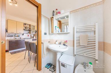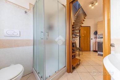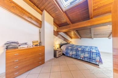 Al piano superiore mansardato abbiamo una bella camera matrimoniale con finestra basculante, e il bagno finestrato con vasca/doccia.