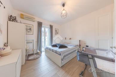 La camera matrimoniale, ampia e ben proporzionata, anch'essa con accesso diretto al balcone, offre un ambiente intimo e rilassante, pensato per garantire il massimo comfort. Completa la proprietà un bagno finestrato, curato nei dettagli e rifinito con gusto.