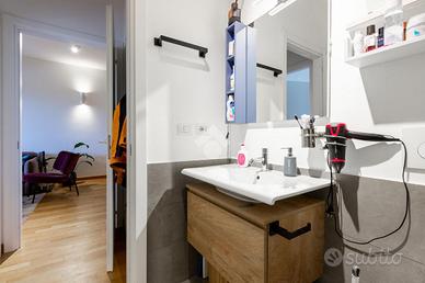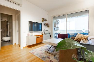 L'eleganza della luce, il valore dei dettagli VIA ARRIGO BENEDETTI L'immobile viene venduto completo di gran parte dell'arredo, realizzato su misura e di eccellente qualità: soluzioni progettate per integrarsi perfettamente negli ambienti, ottimizzare gli spazi e offrire un'estetica elegante e contemporanea. Non semplici mobili, ma arredi pensati e creati per questa casa, capaci di esaltarne lo stile e la funzionalità. All'interno di un complesso residenziale costruito nel 2015, moderno e curato, proponiamo in vendita un raffinato bilocale al secondo piano, perfetto per chi desidera comfort, luminosità e ambienti curati in ogni particolare. L'affaccio aperto a sud regala una straordinaria luminosità naturale durante tutta la giornata, valorizzando gli spazi e creando un'atmosfera calda e accogliente. Varcando la soglia, si viene accolti da un soggiorno a vista con angolo cottura, uno spazio armonioso e ben organizzato dove ogni elemento è stato studiato con attenzione. La zona giorno si apre su un terrazzo dotato di vetrate Total View, che regalano una continuità visiva verso l'esterno e amplificano la percezione dello spazio e della luce. A protezione delle vetrate sono presenti tende a rullo esterne, ideali per schermare dal sole e garantire comfort e privacy, rendendo il terrazzo uno spazio vivibile in ogni stagione. La zona notte, riservata e silenziosa, ospita una camera da letto impreziosita da un importante armadio su misura a tutta altezza, che occupa un'intera parete: una soluzione elegante e altamente funzionale, capace di offrire grande capacità contenitiva mantenendo ordine e pulizia estetica. Un elemento distintivo che valorizza ulteriormente l'immobile. Il bagno, moderno e funzionale, completa l'abitazione con gusto e praticità. L'appartamento è inoltre dotato di impianto di climatizzazione con condizionatori, per garantire benessere in ogni periodo dell'anno. Essendo una nuova costruzione, l'immobile è completamente privo di barriere architett