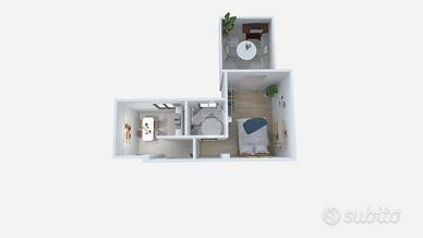 L'appartamento è composto da un soggiorno con angolo cottura, una camera matrimoniale ed un bagno finestrato dotato di doccia. Gli ambienti interni risultano ben distribuiti e funzionali, rendendo la soluzione abitativa pratica e confortevole.