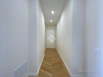 VIA SALARIA: All'interno di un elegante edificio, espressione dell'architettura razionalista, proponiamo la vendita di un appartamento posto al terzo piano e caratterizzato dalla presenza di un terrazzo angolare di 18 mq. Al suo interno, il corridoio di accesso è seguito da un disimpegno, che separa in modo netto la zona giorno dalla zona notte. Il living, con cucina a vista, beneficia del terrazzo dal quale la vista spazia sul Parco di Villa Ada, su via Panama e su via di Villa Grazioli. Il bagno ha doppio accesso, sia dalla camera da letto che dal corridoio, ottimizzando la fruibilità degli ambienti. L' immobile, nuovo e mai abitato, ha riscaldamento centralizzato con contabilizzatori, impianto di aria condizionata e riscaldamento, piastre ad induzione. Ad introdurre l'unità immobiliare vi è una maestosa galleria artistica, fregiata da vetrate di Enrico Del Debbio, illuminate mediante strip led arretrate.