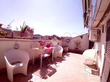VIA VAL MAIRA - ATTICO CON DOPPIA TERRAZZA E BOX AUTO Proponiamo in vendita, nel residenziale ed elegante quartiere di Montesacro, e più precisamente in Via Val Maira, un attico con doppia terrazza, proposta di grande interesse nel panorama immobiliare della zona, disponibile in nuda proprietà. L'immobile è situato al quinto ed ultimo piano di una palazzina signorile interamente rivestita in cortina, in ottimo stato di manutenzione e curata nelle parti comuni. Lo stabile è inoltre dotato di servizio di portierato, elemento che contribuisce a garantire sicurezza, ordine e una gestione efficiente degli spazi condominiali, oltre alla presenza dell'ascensore, che assicura comodità di accesso fino al piano. L'attico sviluppa circa 80 mq interni, ai quali si aggiungono due terrazze abitabili, veri punti di forza della proprietà, che ampliano sensibilmente la vivibilità della casa e permettono di godere appieno di spazi esterni privati, sempre più ricercati nel mercato attuale, soprattutto in contesti urbani consolidati come quello di Montesacro. L'ingresso introduce direttamente nella zona giorno, composta da un accogliente salone con affaccio e accesso alla prima terrazza, creando una naturale continuità tra interno ed esterno e rendendo l'ambiente particolarmente luminoso, arioso e piacevole da vivere sia nella quotidianità sia nei momenti conviviali. La distribuzione interna prosegue in modo funzionale e armonioso: la cucina, abitabile e ben separata, dispone di un proprio accesso alla seconda terrazza, spazio ideale come sfogo esterno di servizio ma anche perfetto per colazioni all'aperto o momenti di relax. La zona notte è composta da una camera da letto ampia e ben proporzionata, pensata per garantire comfort e tranquillità, mentre il bagno, funzionale e ben organizzato, si inserisce in maniera pratica all'interno della casa. A completare la proprietà troviamo due ripostigli, soluzioni estremamente utili e sempre più richieste che consentono di ottimizzare