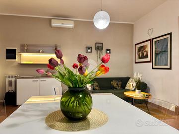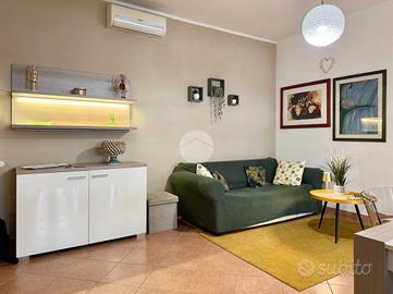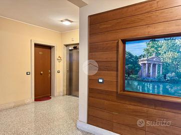 TALENTI - VIA IDA BACCINI Accogliente, silenzioso e pieno di carattere. In zona residenziale, ben servita dalle principali attività commerciali del quartiere, proponiamo in vendita un bilocale 59 mq con cantina di pertinenza. L'abitazione, posta al terzo piano di una palazzina in cortina, si trova in un condominio signorile costruito nel 2010. Varcata la soglia di casa veniamo accolti da un ampio soggiorno con cucina a vista, un ambiente spazioso che ospita il salotto e la sala da pranzo. Un comodo disimpegno separa la zona giorno dalla zona notte, quest'ultima composta da una camera da letto matrimoniale, da un utilissimo ripostiglio e da un ampio bagno dotato di vasca con supporto doccia a parete e illuminato da una propria finestra. Il soggiorno e la camera da letto sono serviti da un ampio terrazzo. L'immobile, estremamente luminoso in virtù dell'esposizione ad ovest, risulta essere molto silenzioso e si presenta in perfetto stato interno. L'appartamento è inoltre dotato di impianto di riscaldamento autonomo, impianto fotovoltaico solare termico per la produzione dell'acqua calda, aria condizionata, porta blindata, infissi in legno con doppio vetro, videocitofono.