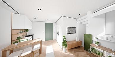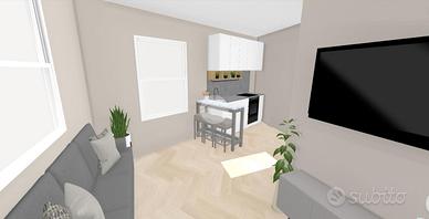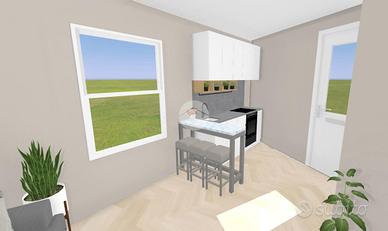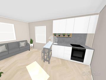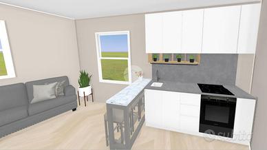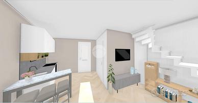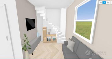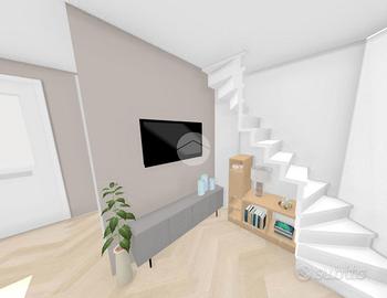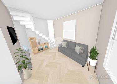 L'ingresso avviene dal cortile comune, dove si trova un portico utilizzabile come posto auto. Al piano terra è prevista una zona giorno compatta ma funzionale, con bagno. Una scala interna conduce al primo piano, dove si trova una camera matrimoniale con accesso diretto a una spaziosa terrazza affacciata sul cortile interno, ideale per godere di privacy e tranquillità.