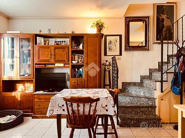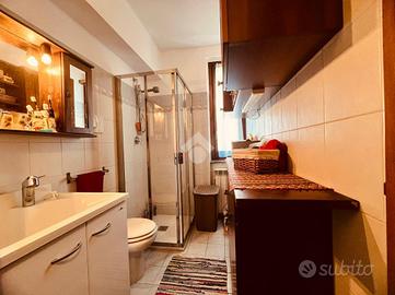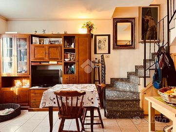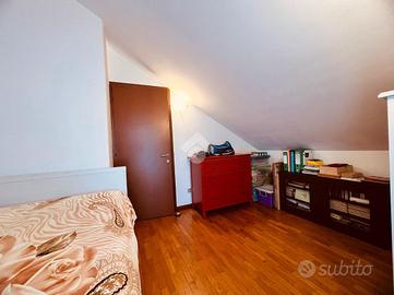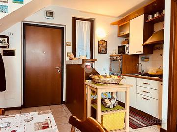 RONCO B.NO- Zona verde e riservata in strada a fondo chiuso a poca distanza sia dal centro cittadino con i suoi negozi e servizi che dalla stazione di Carnate raggiungibile in pochi minuti di auto. L'appartamento è collocato su due livelli al primo e secondo piano di una piccola palazzina con poche unità abitative, priva di ascensore e limitate spese condominiali. Il primo piano accoglie la luminosa zona giorno esposta ad Ovest, composta da un'accogliente area divani/conversazione, e da una cucina a vista ben separata, dotata di una propria finestra. Un pratico disimpegno, utilizzabile anche come zona lavanderia, conduce al bagno finestrato completo di doccia. La scala interna in muratura conduce al piano superiore mansardato, agibile non abitabile, il quale ospita la zona notte composta da due camere da letto e da un secondo servizio finestrato, completo di vasca. La soluzione è dotata di caldaia nuova (2024), impianto d'aria condizionata freddo/caldo, riscaldamento autonomo, zanzariere e predisposizione per antifurto volumetrico. Un box doppio è compreso nel prezzo proposto.