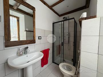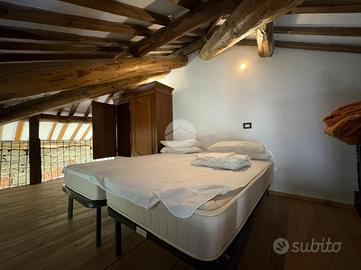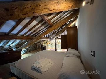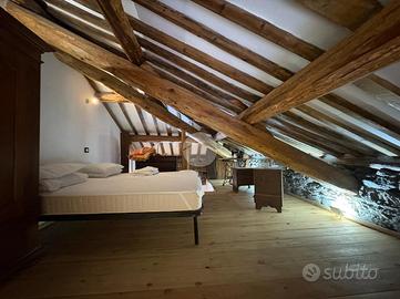 Mediante la scala interna si raggiunge la zona notte mansardata, la quale ospita una camera da letto matrimoniale.