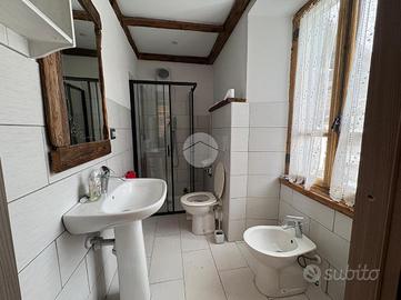 L'ingresso è sull'ampia zona giorno, la quale si compone di una cucina abitabile con zona living ed un servizio igienico finestrato dotato di doccia.