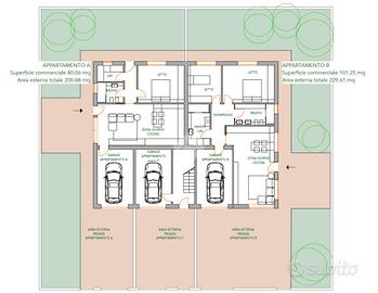 Libero su tre lati, l'appartamento gode di un giardino di proprietà di circa 200 mq e di un'autorimessa singola collegata direttamente agli interni.