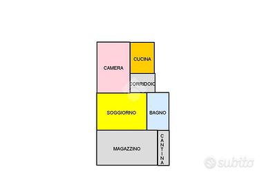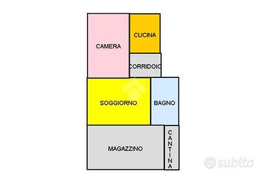 La soluzione è composta da: cucina con accesso al giardino condominiale, un bagno compelto di doccia e sanitari, la cantina, una camera da letto matrimoniale e il soggiorno.