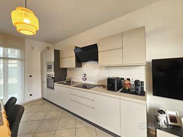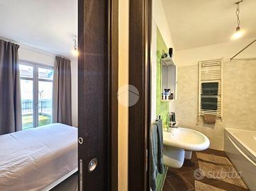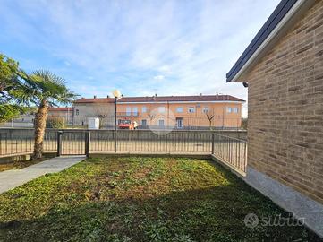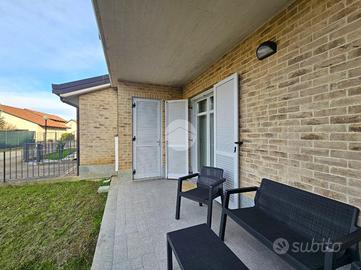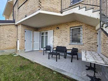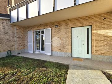 RONDISSONE: In complesso di recente costruzione; Alloggio al piano terra con doppio giardino privato. Ingresso su zona giorno con cucina a vista, camera da letto e bagno dotato di vasca. Tutte le stanze hanno lo sfogo esterno sul verde di proprietà. Il riscaldamento è autonomo a pavimento, alimentato a metano con basse spese di gestione. Tutti gli infissi sono in legno con doppi vetri e gelosie. Inoltre l'appartamento è dotato di predisposizione per i climatizzatori. Incluso nel prezzo un comodo box auto. Soluzione ideale anche ad uso investimento!