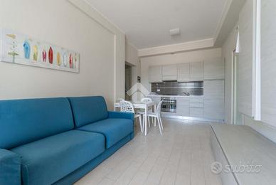 Gli spazi interni sono progettati con cura per garantire funzionalità e comfort: l'ingresso si apre su un luminoso soggiorno con angolo cottura, che conduce a un terrazzo privato, perfetto per rilassarsi e godersi la brezza marina.