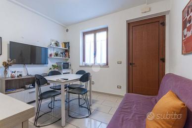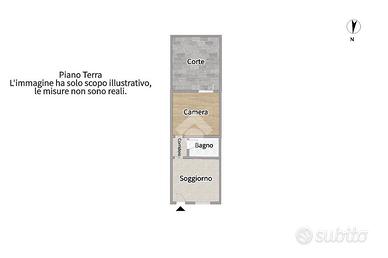 All'interno, una zona giorno con angolo cottura, disimpegno, bagno e a una camera matrimoniale spaziosa, con uscita diretta su una corte esterna privata, perfetta per colazioni all'aperto o serate in compagnia.